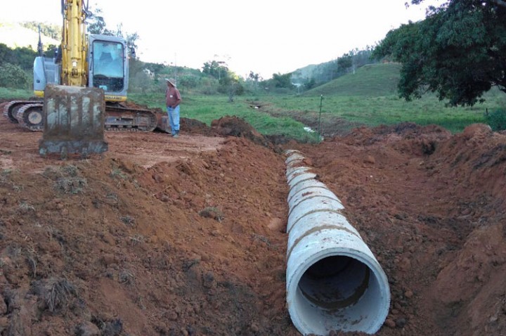 A equipe da Secretaria Municipal de Agricultura continua suas ações no interior do município de Guaçuí. Desta vez os trabalhos aconteceram na localidade da Fazenda Aparecida, onde foi construída uma rede de manilhas para uma barragem que será feita no local.