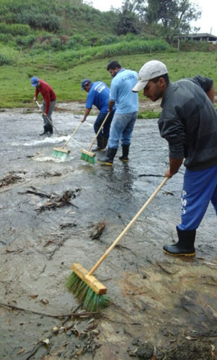 A equipe de Vigilância em Saúde realizou a escovação da cachoeira, visando combater as larvas do borrachudo.