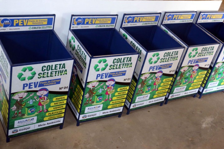 Os Pontos de Entrega Voluntária (PEV) que estão colocados em pontos estratégicos da cidade para receber a coleta seletiva de lixo dos moradores vão começar a ser substituídos por novos. A Prefeitura de Guaçuí, por meio da Secretaria Municipal de Meio Ambiente (Semmam), entrega nesta quarta-feira (06) os cinco primeiros PEVs, de um total de 20, os quais serão utilizados na 2ª Feira de Negócios no Parque de Exposições. A iniciativa faz parte do lançamento da campanha "Guaçuí é nossa casa. Juntos, vamos cuidar". Após serem utilizadas no evento, as cinco novas unidades substituirão cinco das já existentes. A substituição das outras 15 será feita gradativamente.