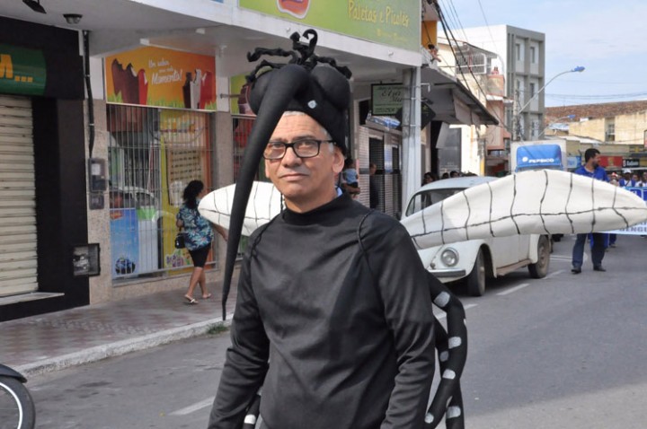 Centenas de pessoas participaram da ação de mobilização, entre crianças, jovens e adultos, inclusive pessoas da Terceira Idade, portando cartazes e banners. Entre eles, um servidor da Vigilância estava fantasiado de mosquito da dengue, tendo ao seu lado outro servidor vestido com a roupa de proteção individual (PI) e bomba costal, simulando matar o mosquito.