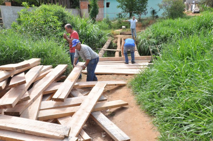 A Prefeitura de Guaçuí, por meio da Secretaria Municipal de Obras e Serviços Públicos (Semosp), na manhã desta terça-feira (24), realizou a reforma de uma ponte de pedestres localizada no bairro Alves Siqueira. A passagem pública apresentava problemas em seus pranchões e estava no cronograma da Semosp para ser recuperada, além de ter sido objeto de uma reunião de membros da comunidade com a prefeita Vera Costa que determinou sua realização com urgência.