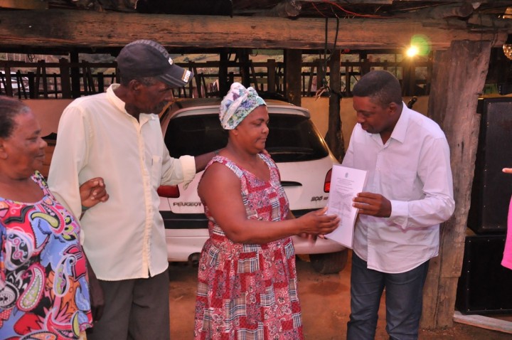 E assim como a culinária, a festa contou com a apresentação de capoeira, bate flecha junto com a Lira (banda de música) e caxambu, seguido de música ao vivo e alegria sobrando. E Dona Lena não escondia disposição e felicidade. “Estamos muito felizes e agradecemos ao pessoal da Prefeitura que nos deu todo apoio para chegarmos a esse momento e termos esse papel que não é para ficar na gaveta, mas para realizar nossos sonhos”, disse, ao lado de seu pai, sua mãe e demais membros da família. “E temos que conservar isso e sermos uma família em união, trabalhando ombro a ombro”, completou, sendo seguida por seu pai – o patriarca da comunidade , Seu Maciel. “Estou muito satisfeito em estar aqui, junto com minha família, unindo esse povo”, afirmou ele.