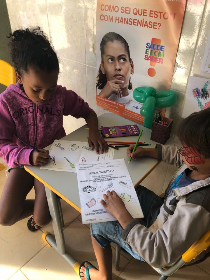 São realizadas brincadeiras e jogos, como pintura facial e desenhos para colorir, e colocados brinquedos à disposição. (Divugação Semus)