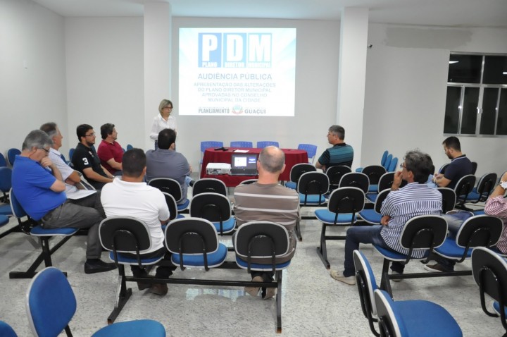 Na noite de sexta-feira (23), a Prefeitura de Guaçuí, por intermédio da Secretaria Municipal de Planejamento, e em conjunto com o Conselho da Cidade, realizou audiência pública para apresentar alterações ao Plano Diretor Municipal (PDM). A audiência aconteceu na Câmara Municipal e reuniu representantes de segmentos da sociedade relacionados com o que trata o projeto.