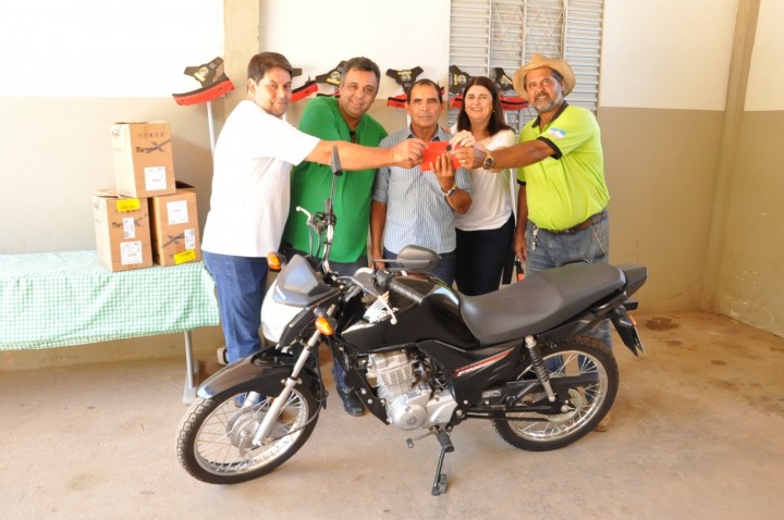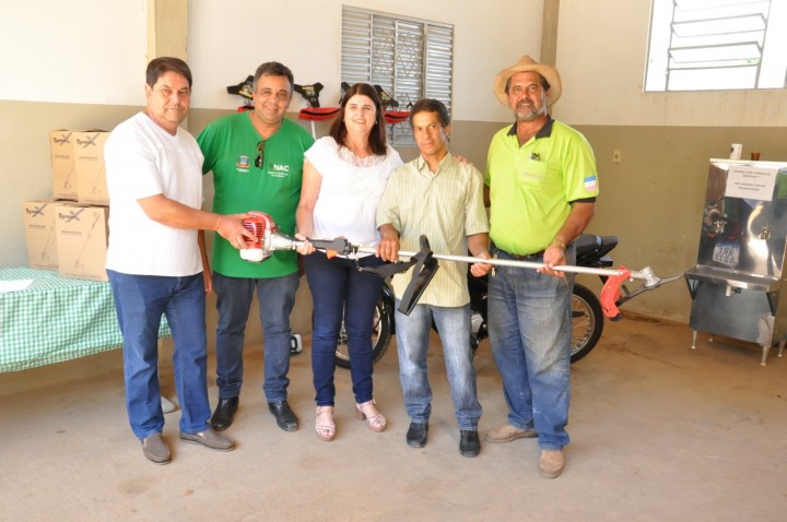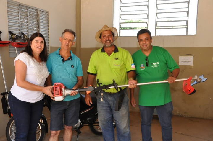 A entrega da moto e seis roçadeiras foi feita na sede da Secretaria Municipal da Agricultura na manhã desta sexta (25)