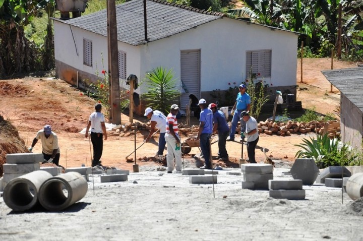 Vera Costa esteve em São Miguel do Caparaó e na Pratinha de Santa Luzia, para conferir obras de calçamento e montagem de um telhado