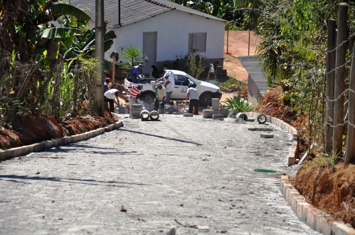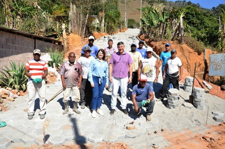 Em São Miguel do Caparaó, a obra está sendo realizada com recursos e mão de obra da Prefeitura. A prefeita e o secretário percorreram os 150 metros de extensão da rua que está recebendo 10.800 blocos e onde foram instalados 300 metros de meio fio e, antes disso, foi realizada a drenagem, com a instalação de 170 metros de manilhas 040.