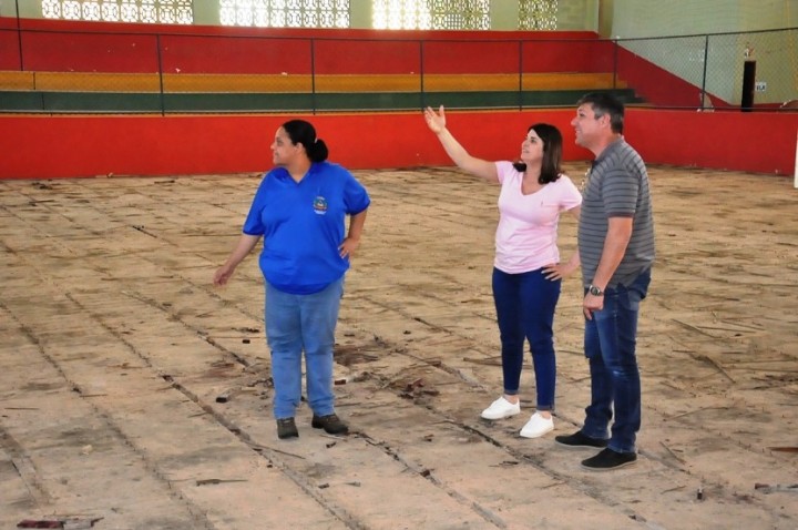 Depois, a prefeita e o secretário estiveram conferindo as obras de reforma do Ginásio de Esportes Municipal, onde estão sendo investidos R$ 214.755,76 em recursos próprios. A ordem de serviço desta realização foi assinada no dia 30 de julho deste ano e os trabalhos estão em bom ritmo de execução. A prefeita conferiu os serviços, deu sugestões e tirou dúvidas sobre a execução da obra.