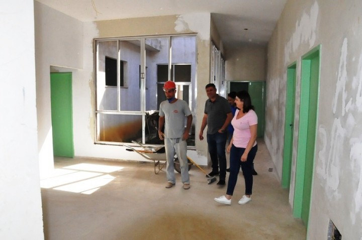 A primeira obra visitada pela prefeita Vera Costa, nesta tarde de sexta, foi a reforma e conclusão da Unidade de Saúde Abelha I e II que está sendo feita em parceria com o Governo do Estado e investido o total de R$ 440.835,46. Conforme informações da Prefeitura, essa unidade foi encontrada inacabada pela administração atual que agora conseguiu sua retomada e a está concluindo para entregar à população em breve. “Essas unidades, hoje, funcionam num anexo da Escola Municipal Isaura Marques da Silva e, quando a unidade estiver concluída, vamos poder oferecer um atendimento ainda melhor para a população, além de liberar o espaço que está sendo utilizado na escola”, destaca a Vera Costa.