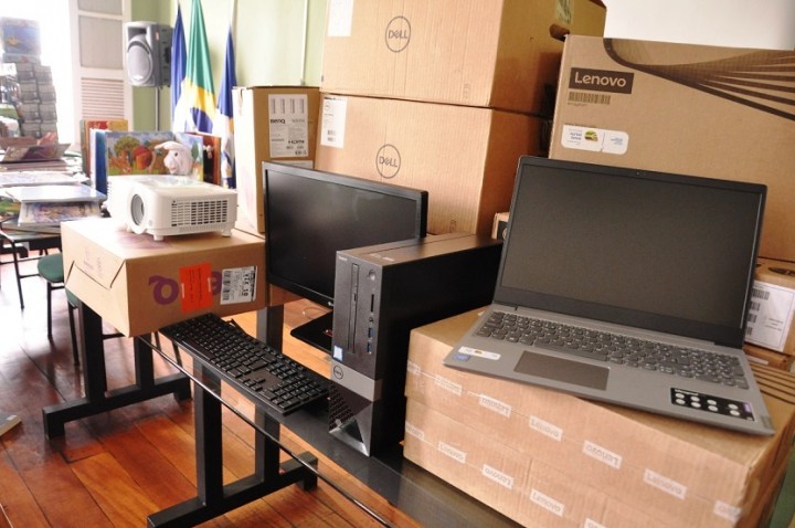 A Secretaria de Educação comprou, com recursos próprios, desde computadores a brinquedos que foram entregues às instituições de ensino