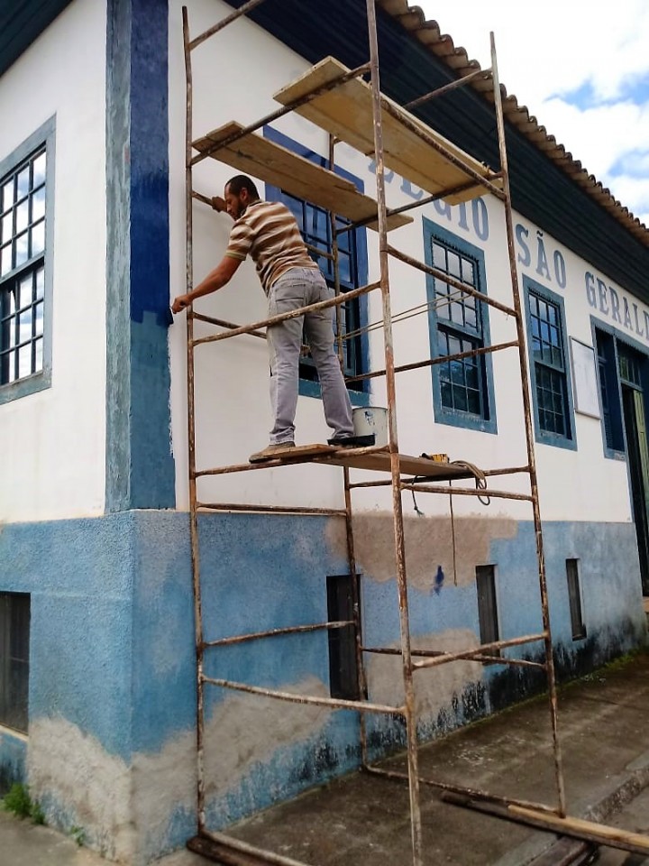 Numa parceria entre a Secretaria Municipal de Cultura, Turismo e Esporte (Semcultes) e a Secretaria Municipal de Obras, Infraestrutura e Serviços Públicos (Semoisp), a Prefeitura de Guaçuí está realizando a reforma do antigo Colégio São Geraldo. O antigo prédio, que atualmente é a sede da Semcultes e abriga a Biblioteca Municipal “Dr. Custódio Tristão”, está recebendo reparos e nova pintura em seu exterior e interior.