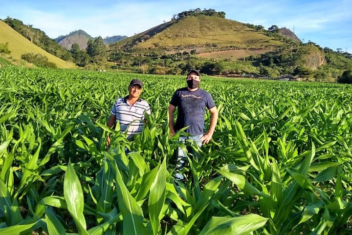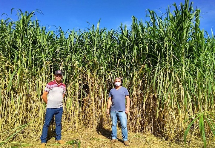 Também está sendo feito o mesmo serviço no milharal do produtor Geraldo Mendonça, na Fazenda Santa Catarina. A assistência técnica começou em 2019, indicando o tipo e dosagem do adubo a ser aplicado no plantio e cobertura, além de auxiliar na época da colheita do milho, para produzir uma silagem de qualidade, visando a alimentação de gado leiteiro. “Nesse milharal, também acompanhamos e orientamos quanto à adubação e manejo da cultura, além de auxiliar na produção da silagem”, explica Gustavo. “Mostramos a importância de fazer silagem de milho e capim, que se trata de armazenar comida, destacando as consequências da má alimentação na vida reprodutiva dos animais”, completa Marcelo.