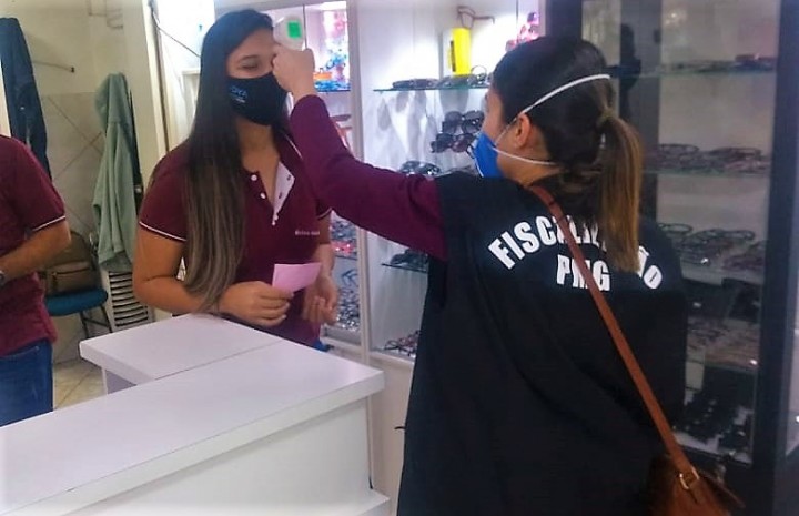 A equipe também está fazendo a aferição da temperatura corporal de funcionários e empregadores. Caso seja identificado alguém com febre, este é encaminhado ao serviço de saúde para a tomada de providências. “Então, é uma ação que visa a segurança da saúde da população e pedimos aos comerciantes que atendam as equipes de modo a terem acesso a todos que trabalham nos estabelecimentos, porque nosso único objetivo é a preservação da saúde de todos”, conclui.