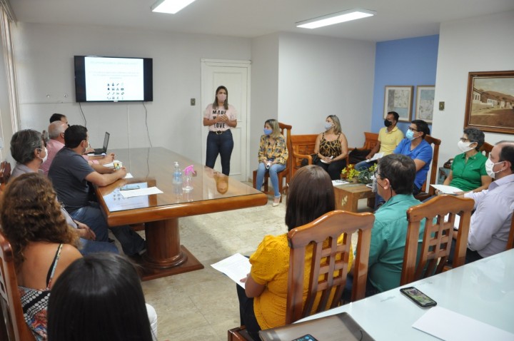 Além dos secretários, participaram da reunião, a 1ª dama, Karla Gonçalves Valentim, a procuradora geral do município, Danielle Leite Freitas, a controladora geral do município, July Silveira Heitor, e o diretor geral do SAAE, Renan Brasil.