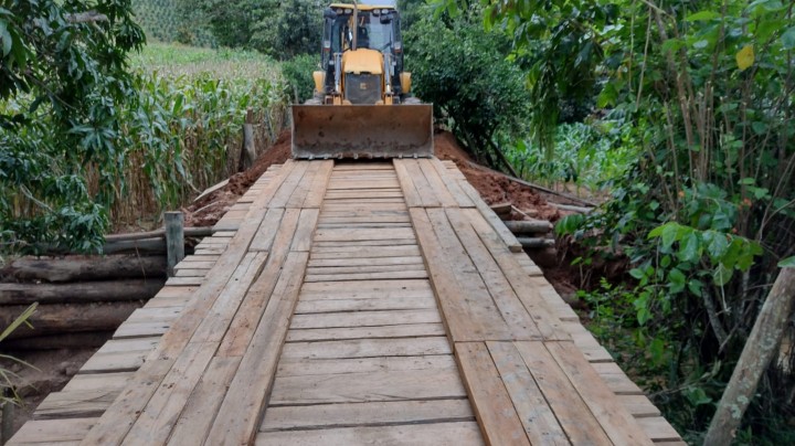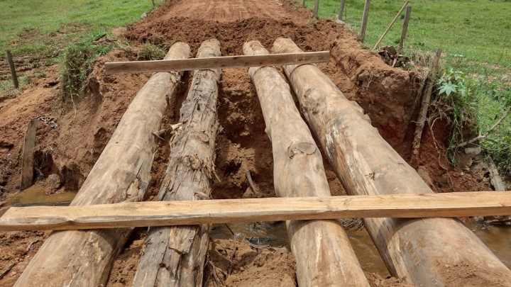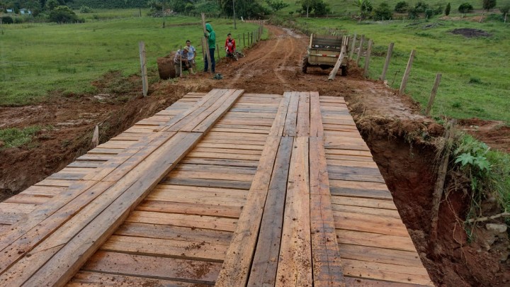 Também foi realizada a recuperação de uma ponte no Córrego do Patrimônio. As vigas e os pranchões deteriorados foram substituídos por peças novas, garantindo a segurança da ponte para o tráfego de veículos.