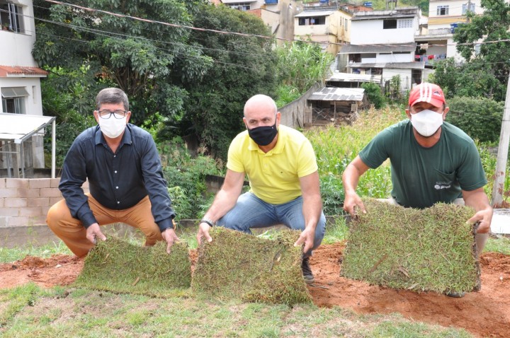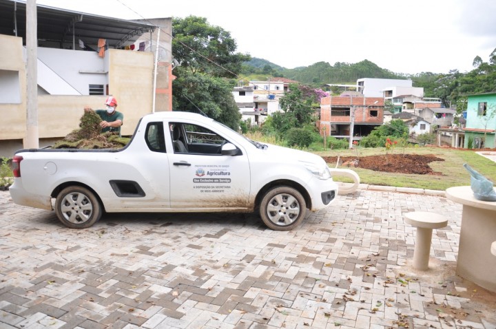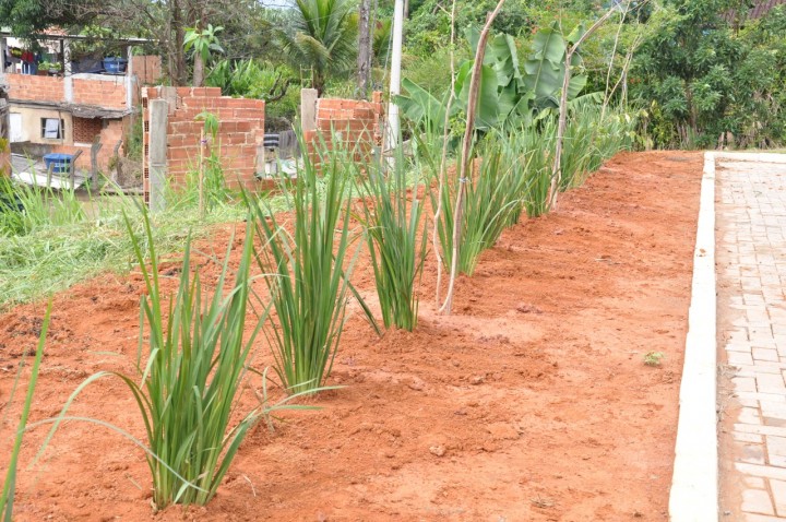 A área está sendo gramada, algumas quaresmeiras foram plantadas e outras espécies florais acrescentadas ao projeto