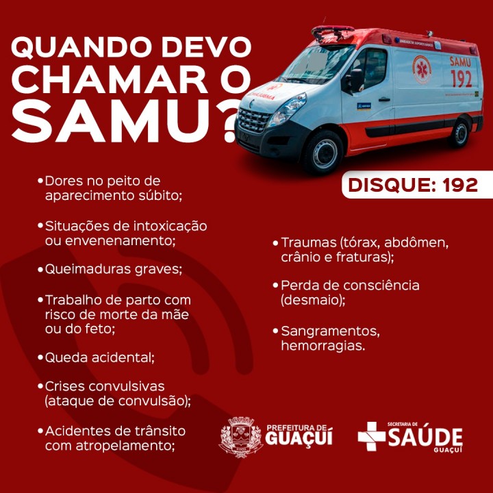 O Samu é um serviço de atendimento pré-hospitalar. O objetivo é fazer com que profissionais de saúde iniciem, da forma mais precoce possível, os procedimentos de salvamento de pacientes em situações de urgência e emergência, aumentando as possibilidades de recuperação das vítimas. Sendo assim, as ambulâncias funcionam como unidades móveis de saúde.
