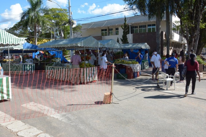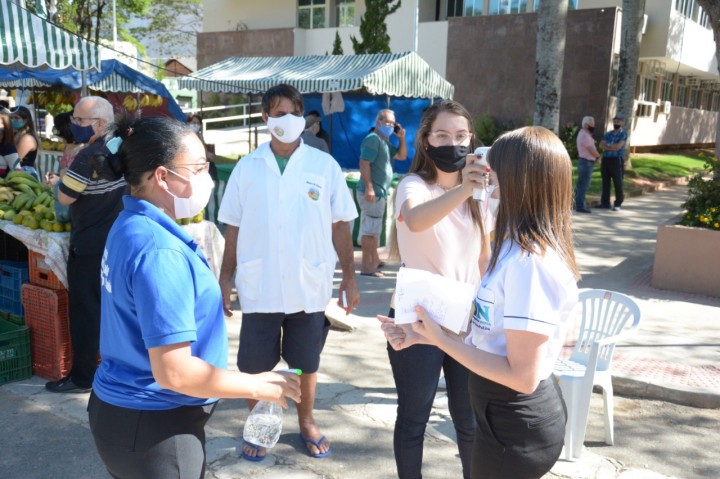 Além do uso de máscara, álcool em gel e distanciamento social, durante todo o horário de funcionamento da Feira, agentes de saúde mediram a temperatura dos consumidores e uma barreira foi instalada para direcionar o fluxo de pessoas.