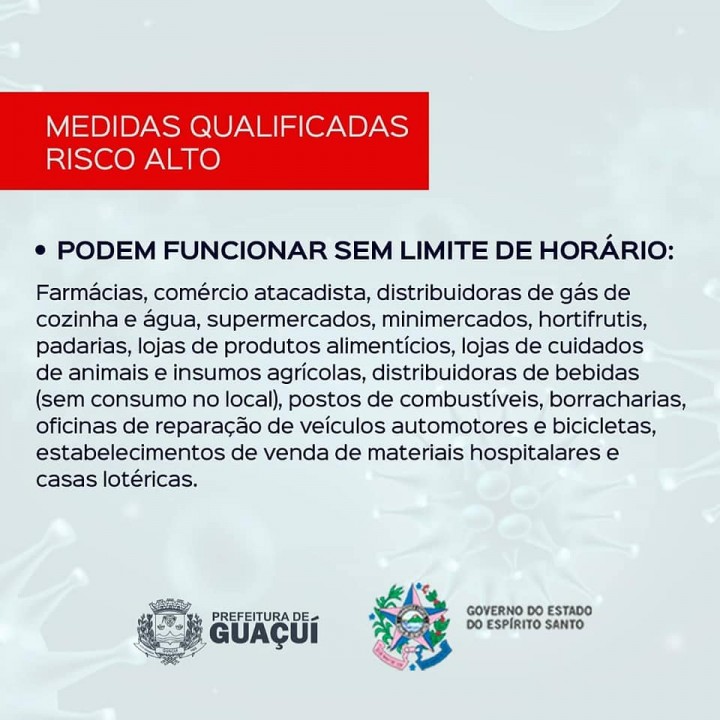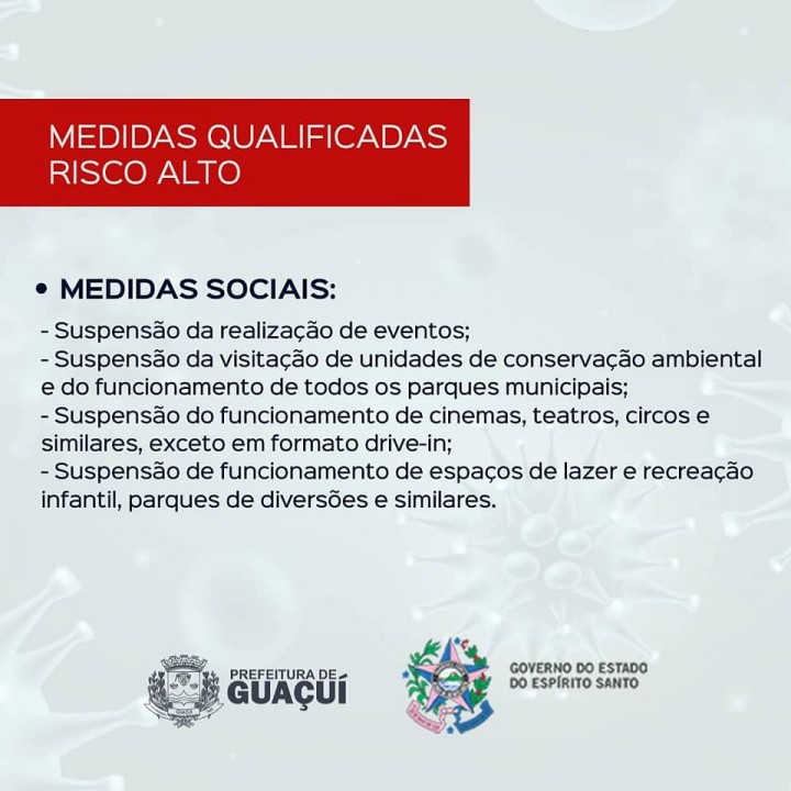 Confira nas imagens abaixo as medidas qualificadas para risco alto: