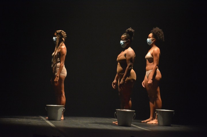 O primeiro grupo a se apresentar foi o Coletivo Emaranhado, com o espetáculo Abajur cor de carne. (Comunicação Guaçuí)