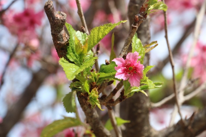 A cerejeira-ornamental é uma arvore de médio porte e floração decorativa, largamente utilizada no paisagismo. As folhas são alternas, ovaladas, acuminadas, com margens serrilhadas e nervuras bem marcadas. Elas surgem com uma tonalidade bronzeada, se tornam verdes e mudam para o amarelo ou vermelho no outono, antes de cair.