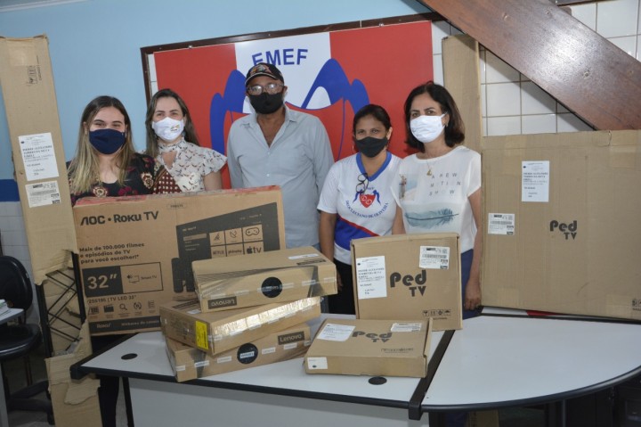 A entrega foi acompanhada pela secretária municipal de Educação, Sayonara Gil, pelo autor da emenda, Valmir Santiago, por professores e pelas diretoras das escolas, Maria Roseméria Sant’Anna e Eliane Correia.