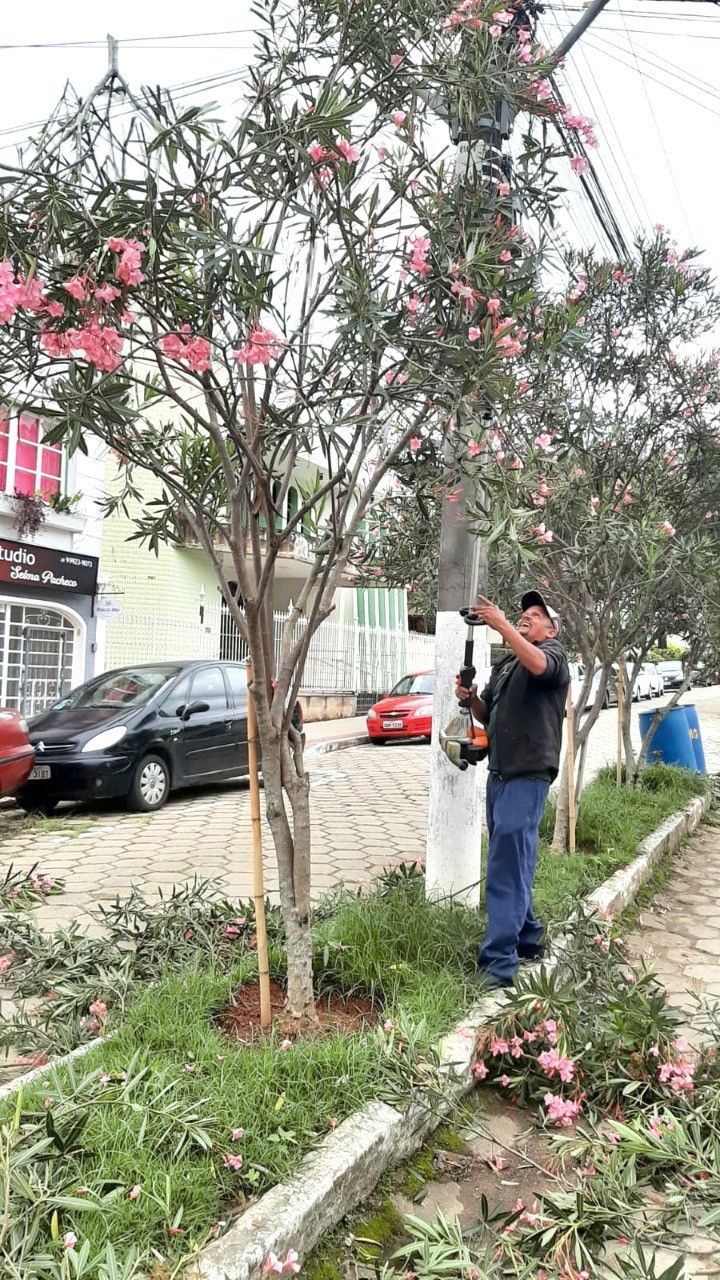 As mais de 250 plantas existentes na cidade, conforme dados da Semmam, conhecidas popularmente como espirradeiras (Nerium oleander), estão recebendo pequenas podas de ajustes visando a floração imediata.