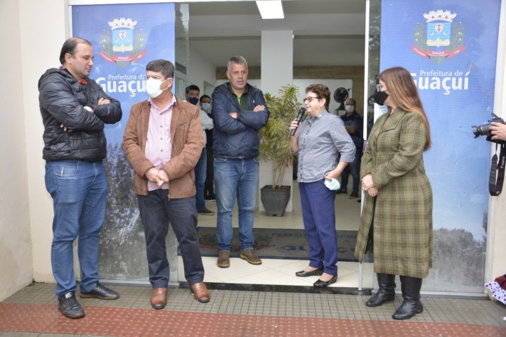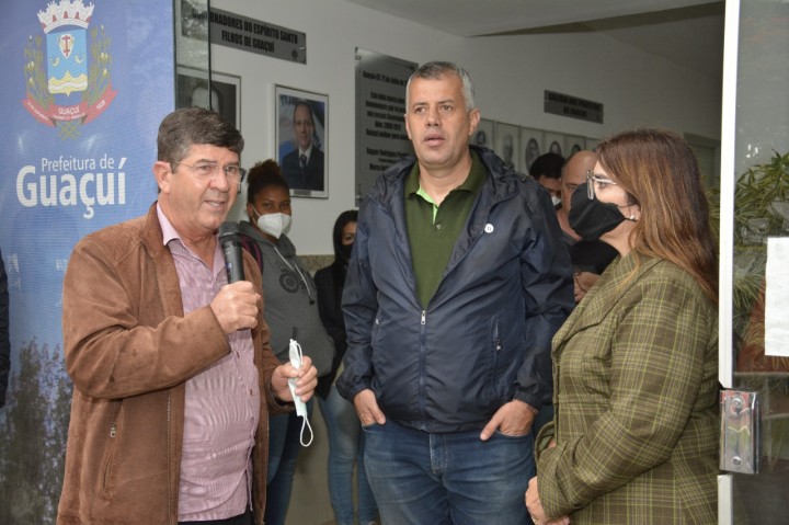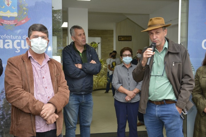 Estiveram presentes na entrega os vereadores Julinho Tererê, Dim Barbeiro, Victor Moraes, a presidente da Câmara Municipal, Maria Lucia das Dores, os produtores rurais Sr Isaías Lobato de Souza representando o Conselho Municipal de Desenvolvimento Rural Sustentável e Sindicato Rural, Edimar Carvalho (Prafazenda) e Burthon Moreira Presidente da Colagua, o presidente do Sindicato dos Servidores Públicos de Guaçuí Paulo César Trigo, além de alguns secretários e servidores municipais.