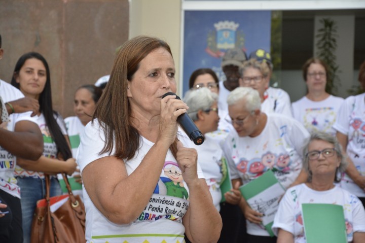 A solenidade de entrega foi realizada em frente à prefeitura e contou com a apresentação do coral da Terceira Idade Alegria de Viver, que entoou duas canções em agradecimento a deputada.