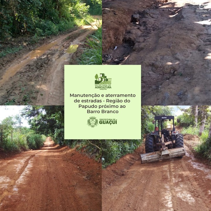 A região do Papudo e Barro Branco foi muito afetada pelas chuvas do início do ano, inclusive com queda de barreiras. A Secretaria de Agricultura, além da manutenção das estradas com a utilização de trator de lâmina em função da largura da estrada, fez também um trabalho de manutenção e construção de redes de manilhas e dreno com o objetivo de retirada da umidade do leito da estrada. Com as chuvas por longo período, vários pontos da estrada foram danificados por excesso de umidade. Ao todo foram feitos: