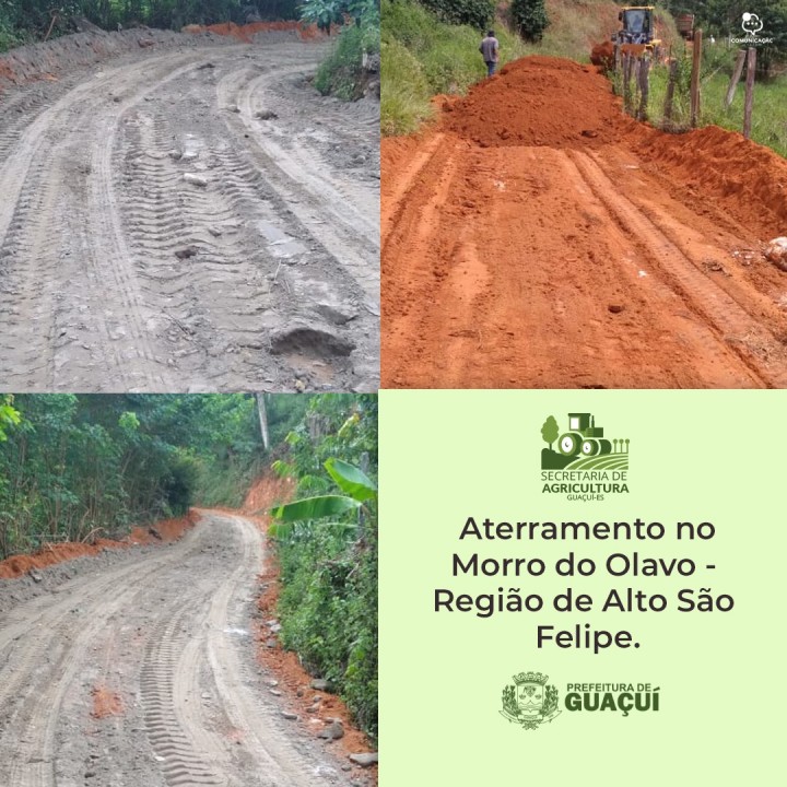 Dando sequência ao trabalho de manutenção e recuperação de estradas rurais, a Prefeitura Municipal de Guaçuí, por meio da Secretaria de Agricultura, está realizando melhorias em diversas localidades do município.