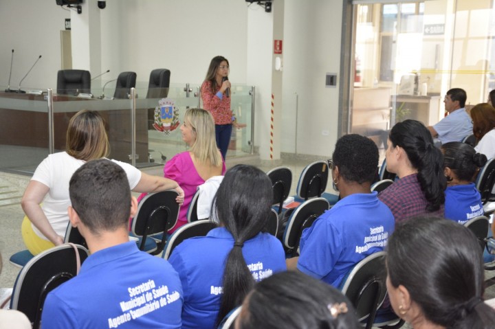Na última sexta-feira (29), a secretária de Saúde, Juliana Miranda, juntamente com o prefeito, Marcos Luiz Jauhar, realizou uma reunião com os sessenta e três Agentes Comunitários de Saúde do município. O intuito foi fornecer informações que contribuirão na condução dos serviços prestados por esses profissionais no município.