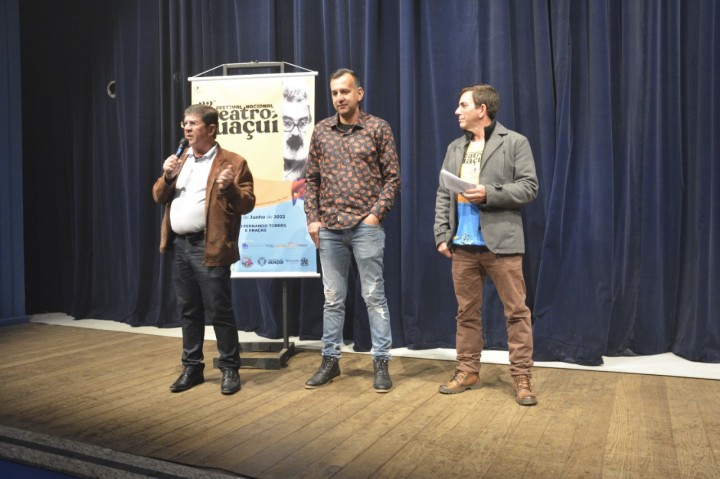 Antes da apresentação, o diretor do Grupo Teatral Gota, Pó e Poeira, Carlos Ola, agradeceu os apoios que propiciam a realização do evento, destacando a Secretaria de Estado da Cultura (Secult), da Prefeitura de Guaçuí, por intermédio da Secretaria Municipal de Cultura, Turismo e Esportes, “Agradeço a todos que nos apoiam para a realização deste evento, sem essas parcerias torna-se impossível realizar o Festival Nacional de Teatro de Guaçuí”.