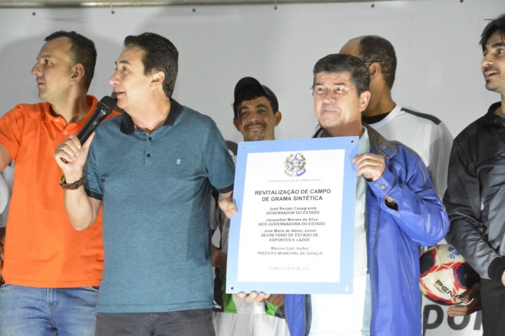 O prefeito, Marcos Luiz Jauhar agradeceu ao governo do Estado e ao Secretário de Estado de Esportes e Lazer, Júnior Abreu por mais uma vez estarem investindo no município de Guaçuí. “Precisamos agradecer primeiro a Deus pelas nossas vidas. Depois de dois anos de pandemia podemos estar reunidos aqui hoje comemorando junto com a população a entrega desses campos que permitirá ofertar práticas esportivas de qualidade para nossas crianças e adolescentes. O esporte muda a vida dos jovens, tiram eles das ruas e contribui para que as crianças de hoje sejam bons cidadãos amanhã”, concluiu Jauhar.