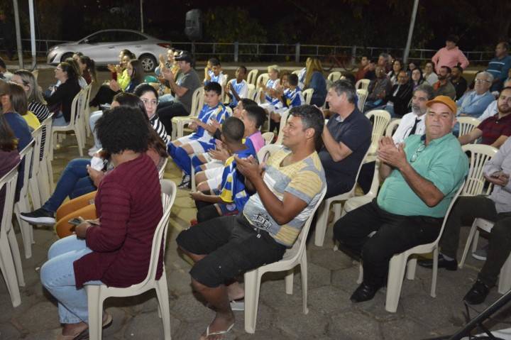 A solenidade aconteceu no Campo Bom de Bola II e contou com a participação de secretários municipais, servidores, vereadores, alunos da escolinha de futebol e sociedade civil.