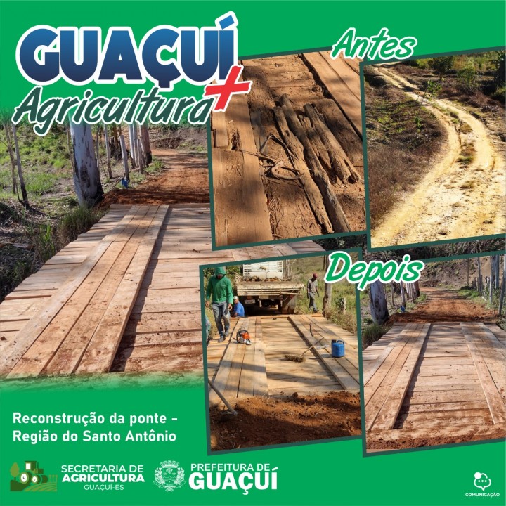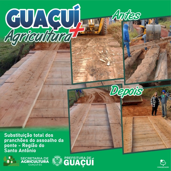 Na região do Santo Antônio foi realizada a manutenção de duas pontes, com substituição parcial de vigas de madeira e substituição total dos pranchões do assoalho das pontes e manutenção de rede de manilhas.