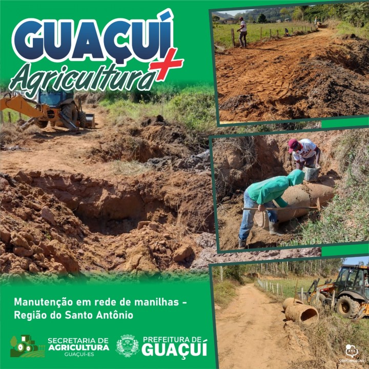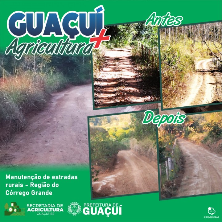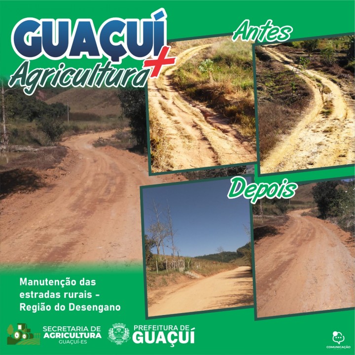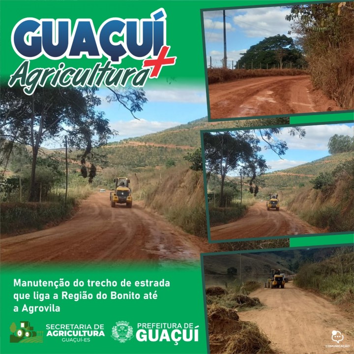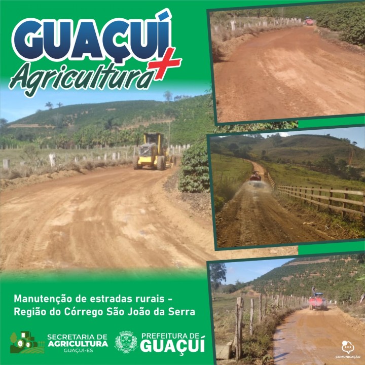 Nos últimos dias foram realizados os serviços de manutenção das estradas rurais na região do Desengano, Córrego São João da Serra, Córrego Apolinário, Patrimônio, região da antiga Granja Santa Catarina e o trecho que vai do Bonito até a Agrovila. Algumas localidades receberam serviço de aterramento, patrolamento, limpeza e execução de saídas de água pluvial.