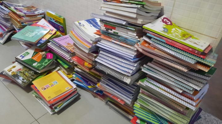 Cerca de 500 livros didáticos sem serventia foram doados pelo Colégio Israel para a Secretaria Municipal de Meio Ambiente (Semmam), que foram encaminhados para a Associação de Catadores de Materiais Reciclados.