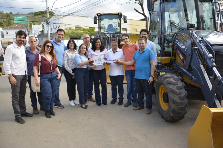 Durante a solenidade também foi entregue uma pá carregadeira, uma retroescavadeira, um carro Furgão, para a Secretaria Municipal de Agricultura e um Caminhão Compactador de Lixo para a Secretaria Municipal de Obras.