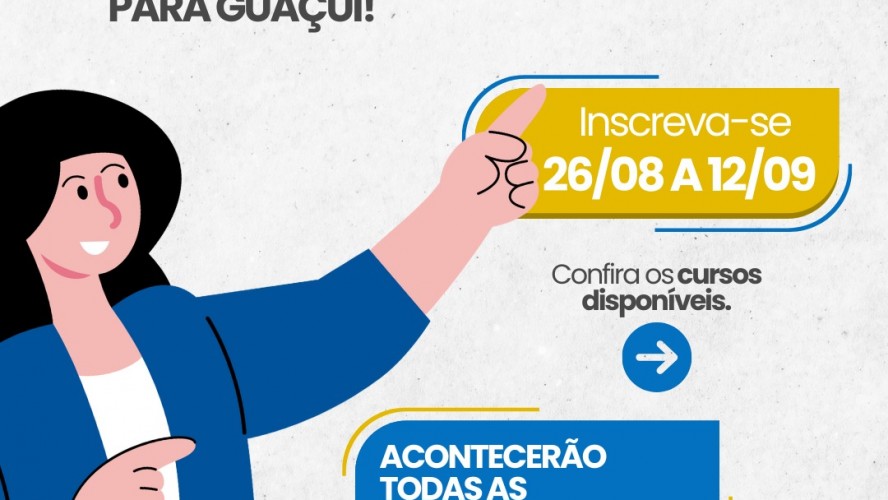 Noticia INSCRIÇÕES ABERTAS PARA QUALIFICAR ES EM GUAÇUÍ há 1 mês • Educação