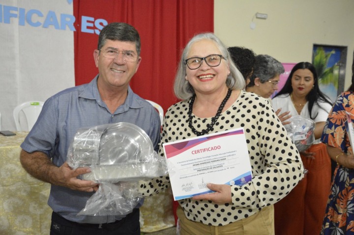 Os 51 alunos dos cursos de Preparação de Salgados, Pizzaiolo e Doces para Festa, receberam um certificado reconhecido pelo Governo do Estado e um kit empreendedor.