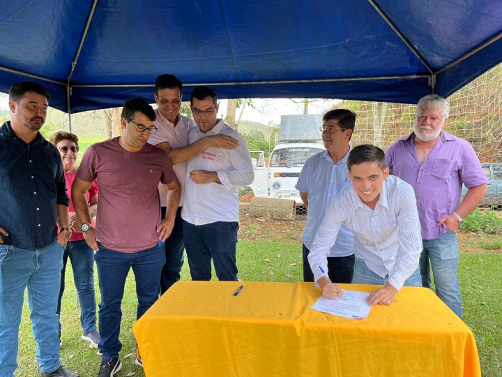 A Prefeitura de Guaçuí, por meio da Secretaria Municipal de Cultura, realizou na manhã desta sexta-feira (27), a assinatura da ordem de serviço para a instalação de iluminação no campo do distrito de São Tiago. Esta importante iniciativa, que trará melhorias significativas para a comunidade local, é resultado de uma emenda parlamentar generosamente destinada pelo deputado estadual Bruno Rezende, a pedido do vereador Renato Duponi.