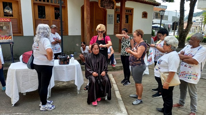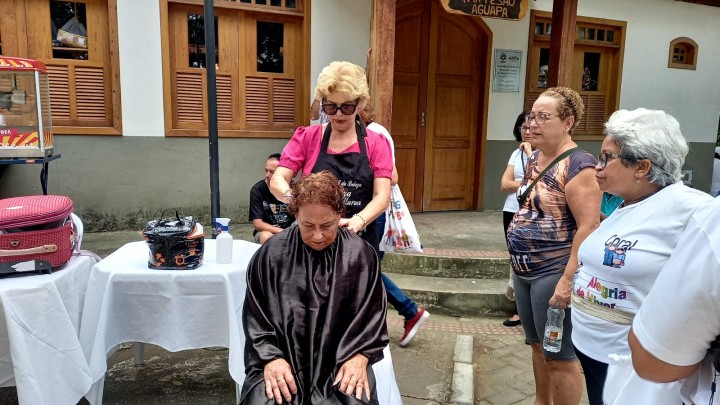 Uma tenda da beleza foi montada para oferecer cortes de cabelo, proporcionando momentos de relaxamento e cuidado pessoal aos participantes. Esta iniciativa visou promover a autoestima e a autoconfiança dos idosos.