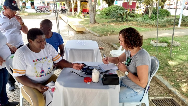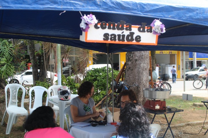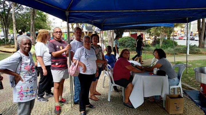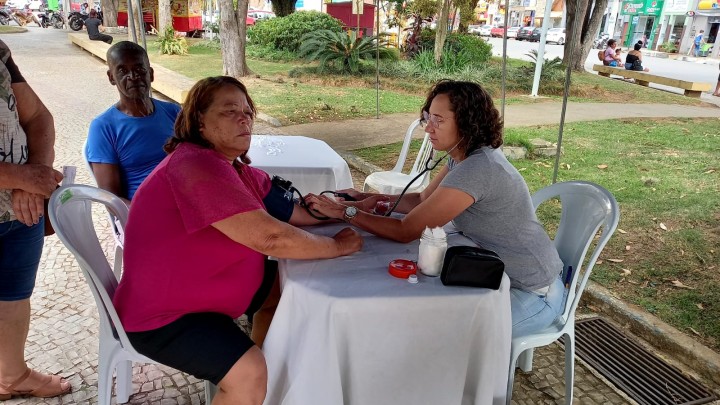 Na tenda da saúde, profissionais de saúde ofereceram aferições de pressão arterial e realizaram testes rápidos para verificar indicadores de saúde fundamentais. O objetivo era assegurar que os idosos tivessem acesso a informações importantes sobre sua saúde.