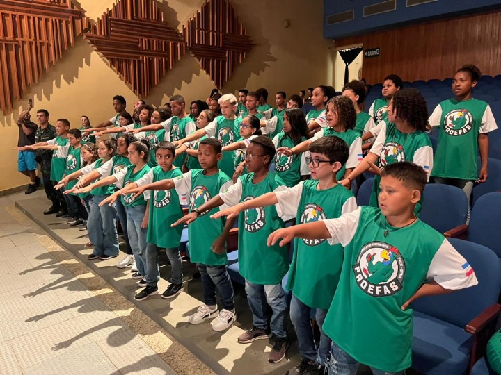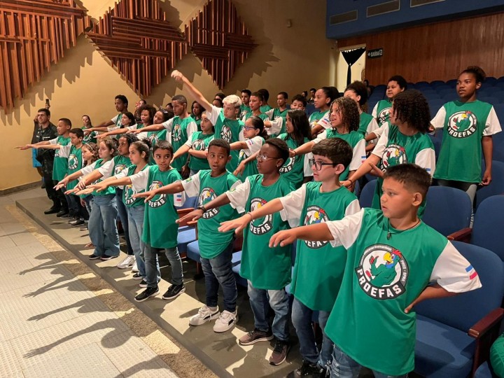Nesta terça-feira (14), aconteceu a formatura da segunda turma do Programa Educacional de Agentes Ambientais Sustentáveis (PROEFAS), da 4ª Companhia do Batalhão de Polícia Militar Ambiental com os alunos das Escolas Guiomar Soares de Azevedo e Eugênio de Souza Paixão. Os 45 alunos das turmas do 5º ano, aprenderam sobre diversas temáticas relacionadas ao meio ambiente, durante quatro módulos de aprendizagem: Água, Flora, Fauna e Resíduos Sólidos, além de um quinto encontro, fora da escola, onde puderam vivenciar na prática todo o conteúdo aprendido.