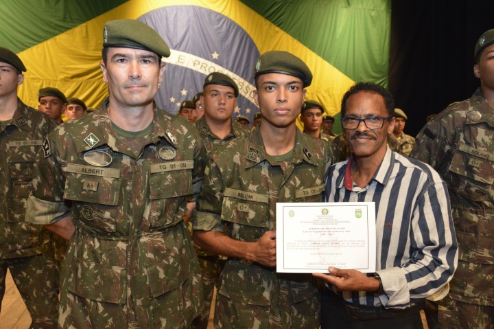 Durante a cerimônia, realizada no Teatro Municipal Fernando Torres, foram entregues certificados a todos monitores pela conclusão do curso de formação, além de certificados ao melhor atirador combatente, melhor aptidão física, destaque geral do TG, honra ao mérito, troféu ao grupo de combatente destaque do ano de instrução e troféu da prova Sargento Max Wolf Filho. Da mesma forma, foram entregues uma lembrança do Tiro de Guerra para órgãos, empresas e profissionais do município, pelo apoio prestado durante todo ano de 2023 para a formação dos atiradores.