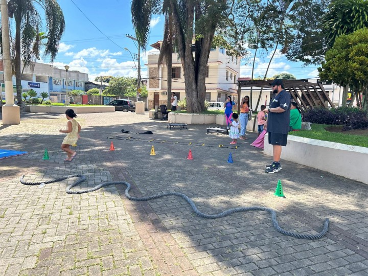 Durante a ação, as crianças participaram de sessões de pilates adaptado, circuito de atividades, pintura artística, além de se divertirem em brinquedos como pula-pula e castelo inflável. Também foi oferecida a vacinação contra a gripe, garantindo a imunização da população durante o evento.