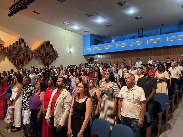 Na noite da última quinta-feira (28), o Teatro Fernando Torres sediou o Festival Prata da Casa, promovido pela Prefeitura de Guaçuí por meio da Secretaria Municipal de Educação. O evento teve como objetivo reconhecer o trabalho dos servidores que se destacaram em 2024, com base nos resultados de aprendizagem dos alunos da rede municipal, além de celebrar os professores que participaram de formações continuadas ao longo do ano.