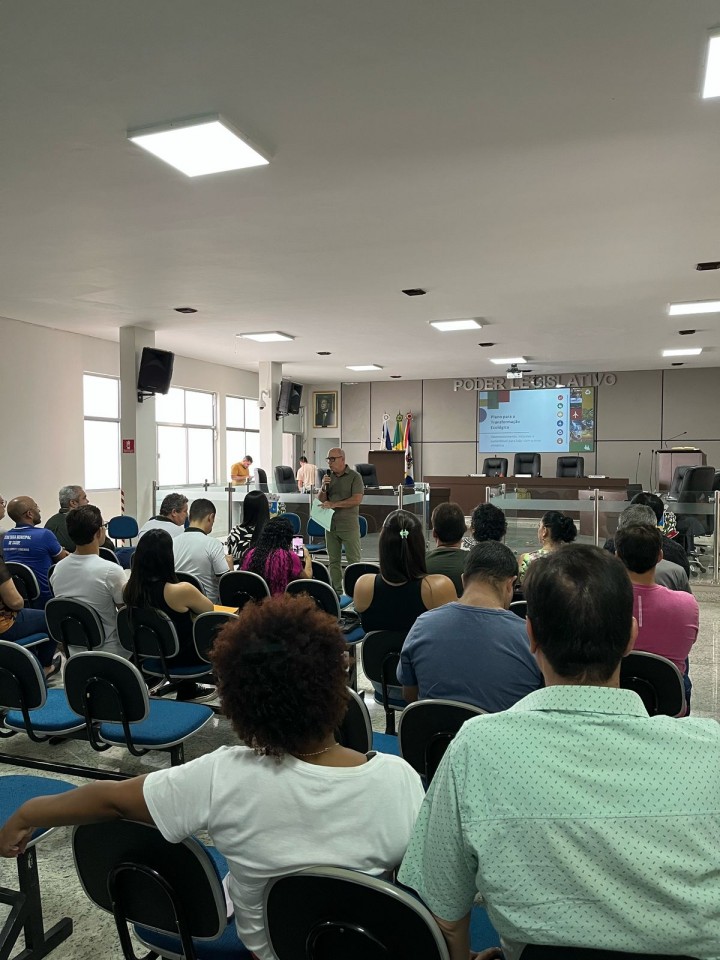 A 1ª Conferência Municipal do Meio Ambiente de Guaçuí reuniu, nesta quarta-feira (12), autoridades ambientais, voluntários, representantes de entidades organizadas, vereadores, policiais ambientais, educadores e especialistas para debater a temática “Emergência Climática: o Desafio da Transformação Ecológica”. O evento, realizado no auditório da Câmara Municipal, teve como objetivo mobilizar a sociedade na construção de propostas para enfrentar as mudanças climáticas.