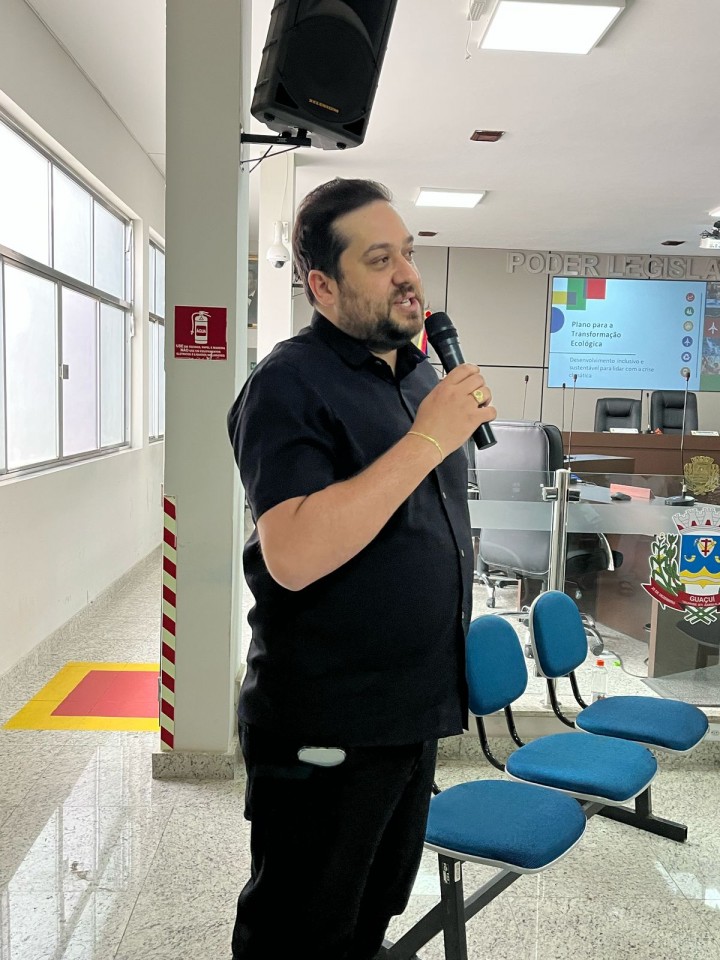 O Dr. Alexandro Batista reforçou o impacto positivo da conferência, “Quem ganha é o município de Guaçuí, que sai na frente ao mobilizar a sociedade para enfrentar o desafio da transformação ecológica com responsabilidade.”